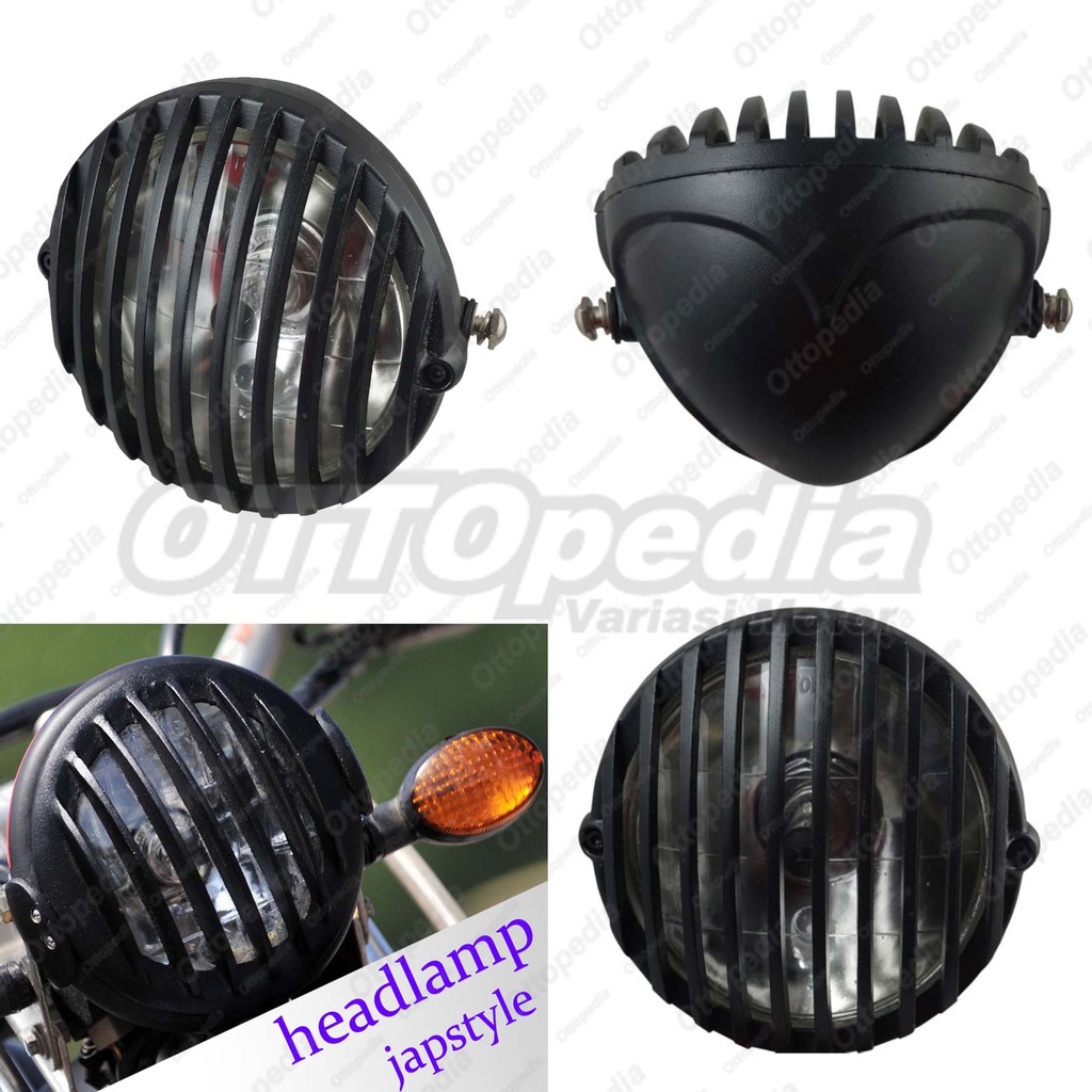Reflektor Headlamp Lampu Depan Japstyle Cafe Racer Grill Garis Hitam Shopee Indonesia